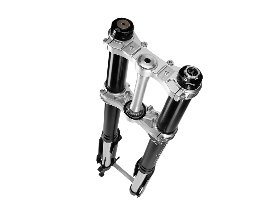 Combined, these components form a competition-ready chassis engineered for maximum rigidity, reduced rotational inertia, and precise front-end feel demanded in professional motorsport and advanced e-moto applications.
